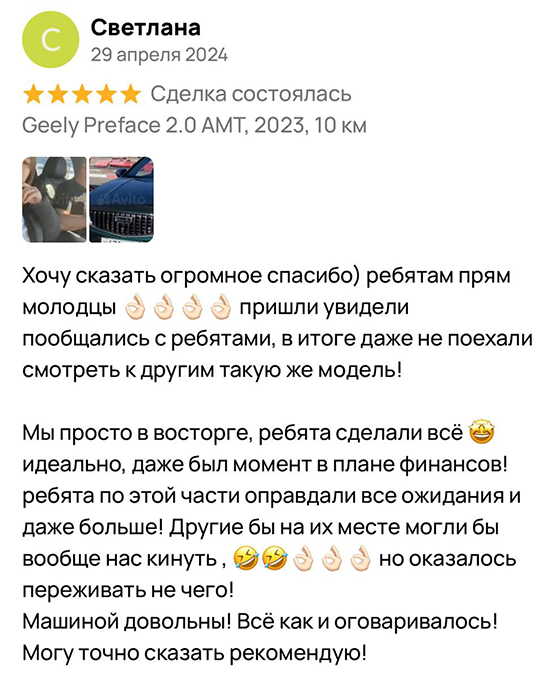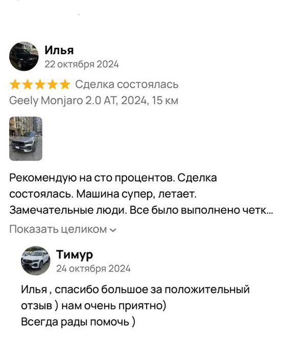 Все этапы оформления берём на себя. Вы получаете автомобиль с ПТС, оформленным договором купли-продажи и полным пакетом документов для постановки на учёт в вашем регионе. Вам не придётся сталкиваться с бюрократией — всё под ключ.